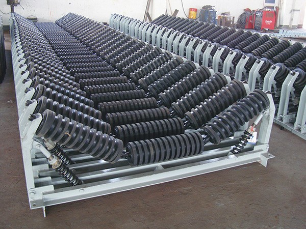 (4)緩沖托輥有彈簧板型托輥、緩沖圈型托輥、強力緩沖型托輥、可調(diào)彈力型托輥、吊掛型托輥等;